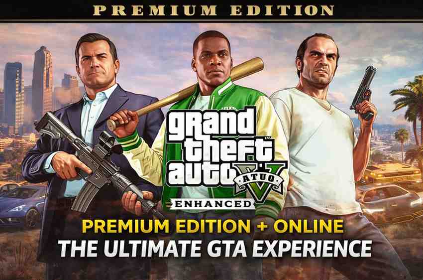 The Enhanced Premium Edition includes improved visuals, performance upgrades, GTA Online 1.72, and all released DLCs, offering both an immersive single-player experience and endless multiplayer chaos with friends.