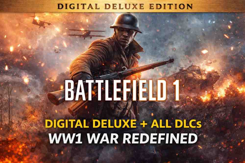 The Digital Deluxe Edition (Update 3) includes all major DLC expansions, bonus content, early access weapons, and full multiplayer support. With massive maps, dynamic weather, authentic WWI weapons, and immersive sound design, Battlefield 1 remains one of the most visually impressive war shooters on PC.